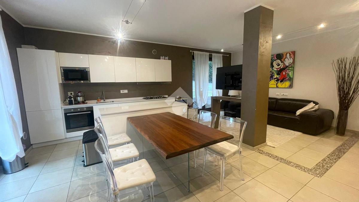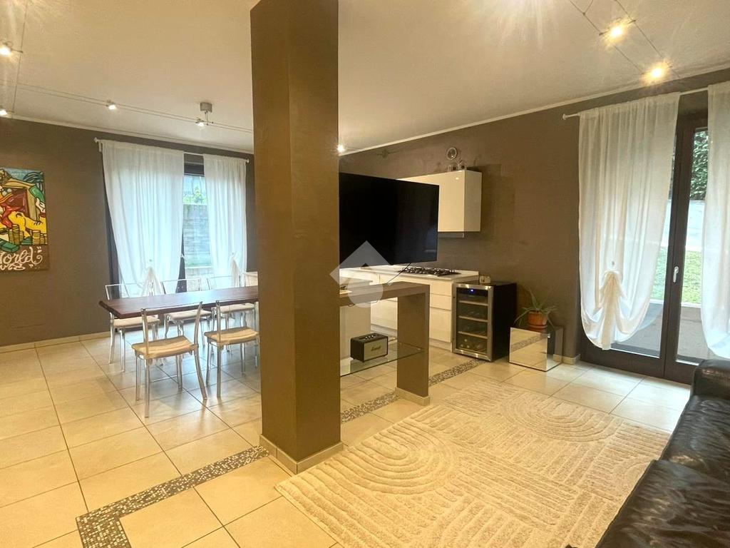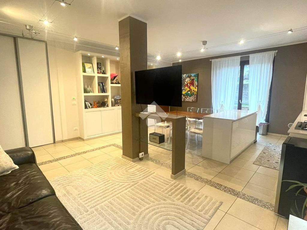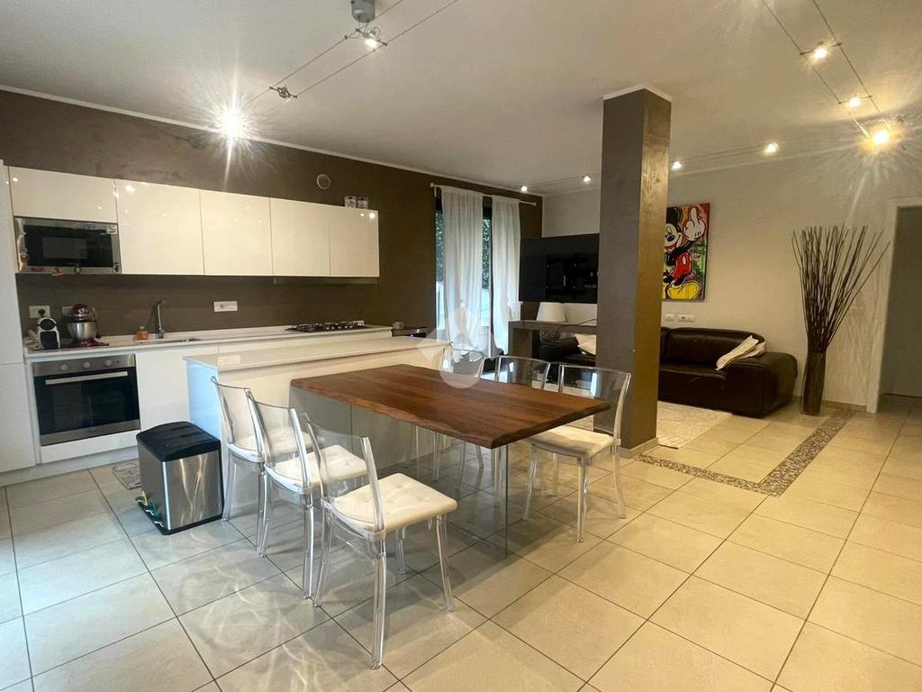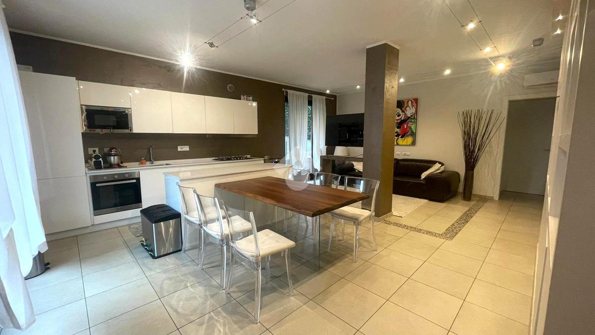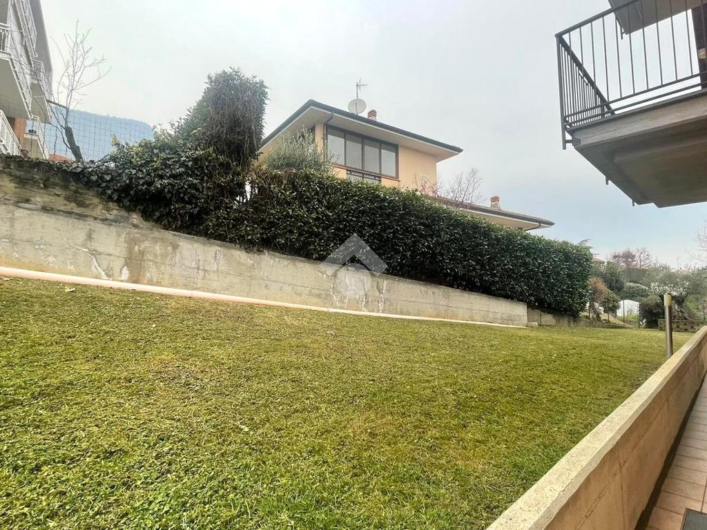 L'appartamento è situato in un piccolo contesto di cinque famiglie, signorile e di recente costruzione, in zona semicollinare vicino tutti i servizi principali. E' circondato da un ampio giardino privato, parte verde e parte terrazzato. La zona giorno si apre su un luminoso soggiorno con cucina a vista, un salotto che è stato aperto per avere maggiore luce e spazio ma che puo' essere ripristinato come seconda camera. La zona notte comprende una spaziosa camera da letto, perfetta per il riposo. Il bagno è dotato di finiture di qualità. L'appartamento è dotato di aria condizionata per garantire il massimo comfort in ogni stagione, riscaldamento a pavimento e viene venduto con tutti gli arredi ed elettrodomestici. Completano la proprietà un box auto triplo, un posto auto esterno e due cantine. Questa soluzione abitativa rappresenta un'opportunità unica per chi cerca eleganza e praticità in una posizione centrale.