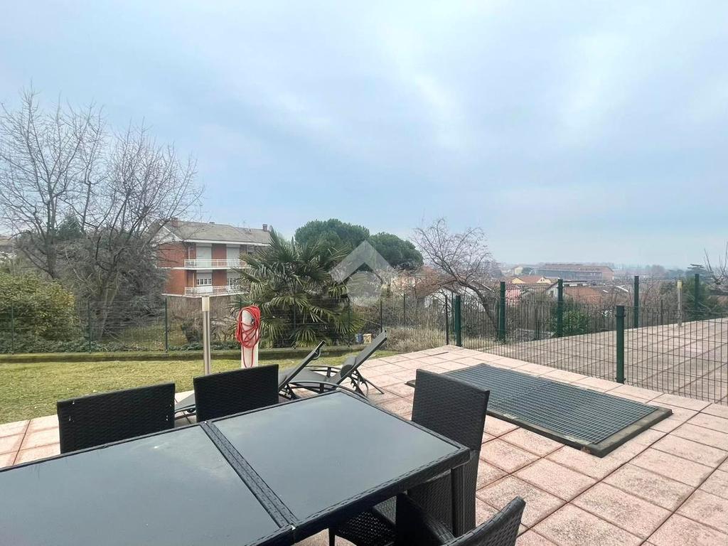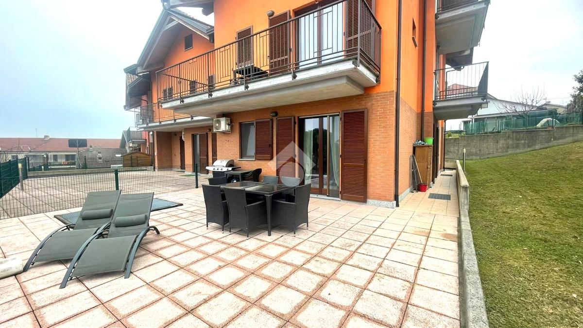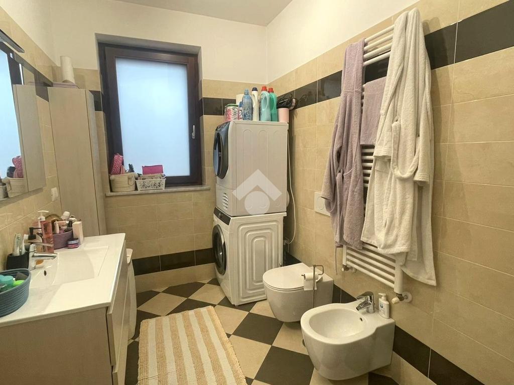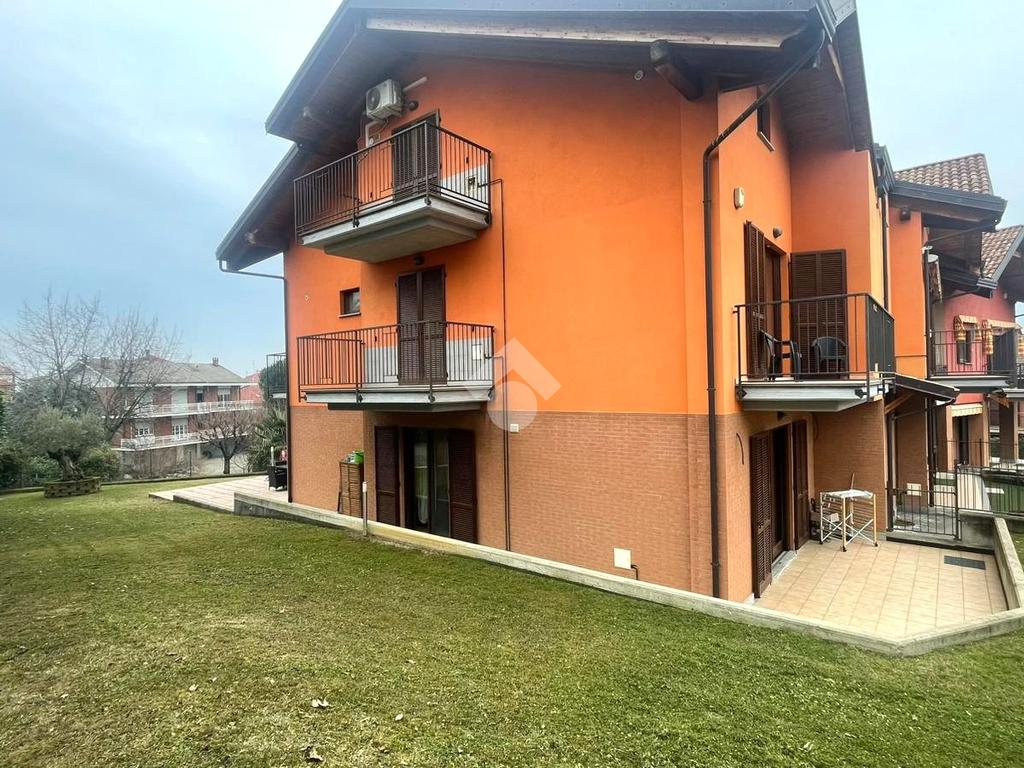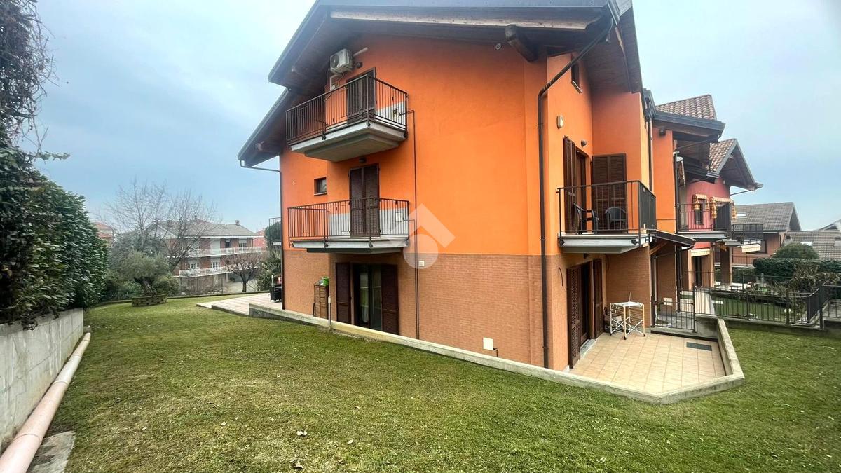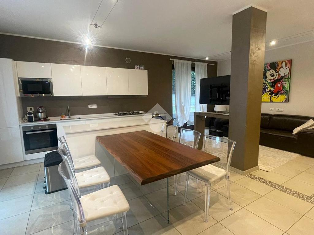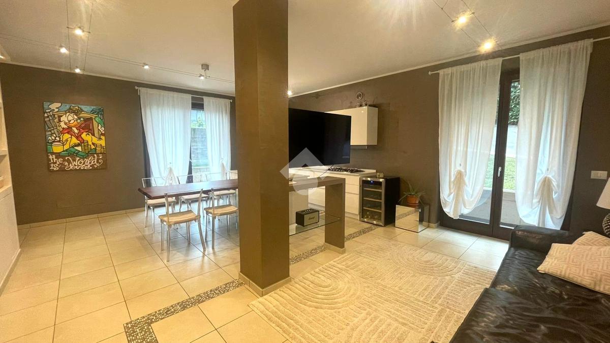 L'appartamento è situato in un piccolo contesto di cinque famiglie, signorile e di recente costruzione, in zona semicollinare vicino tutti i servizi principali. E' circondato da un ampio giardino privato, parte verde e parte terrazzato. La zona giorno si apre su un luminoso soggiorno con cucina a vista, un salotto che è stato aperto per avere maggiore luce e spazio ma che puo' essere ripristinato come seconda camera. La zona notte comprende una spaziosa camera da letto, perfetta per il riposo. Il bagno è dotato di finiture di qualità. L'appartamento è dotato di aria condizionata per garantire il massimo comfort in ogni stagione, riscaldamento a pavimento e viene venduto con tutti gli arredi ed elettrodomestici. Completano la proprietà un box auto triplo, un posto auto esterno e due cantine. Questa soluzione abitativa rappresenta un'opportunità unica per chi cerca eleganza e praticità in una posizione centrale.