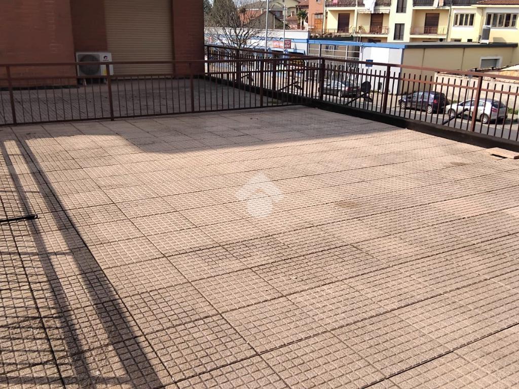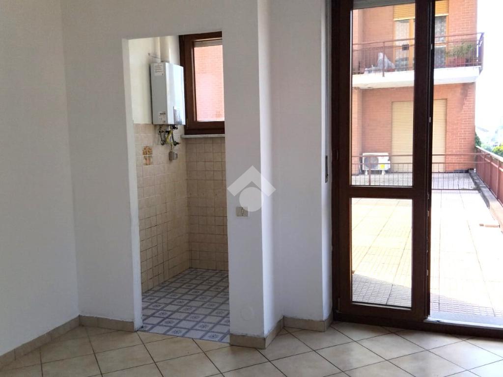 L'appartamento è situato al primo piano in condominio in paramano degli anni '70. E' composto dall'ingresso che disimpegna tutti i locali, quali il tinello con cucinino con affaccio su splendido terrazzo di circa 50 mq, due camere da letto, una delle quali con balcone ed il bagno con doccia. Tutti gli infissi sono stati cambiati con serramenti in PVC con vetro camera. Il riscaldamento è centralizzato con valvole termostatiche, tutti i servizi principali sono nelle immediate vicinanze. Libero subito.